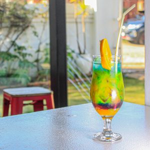 A wide range of alcoholic and soft drinks is offered at the bar.